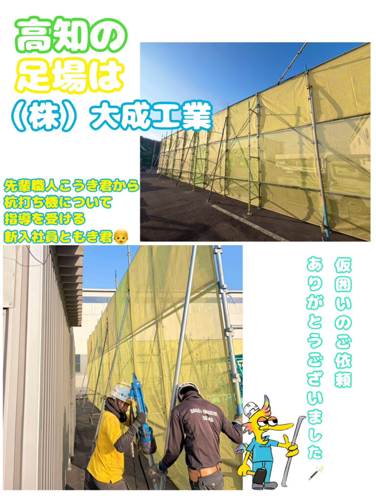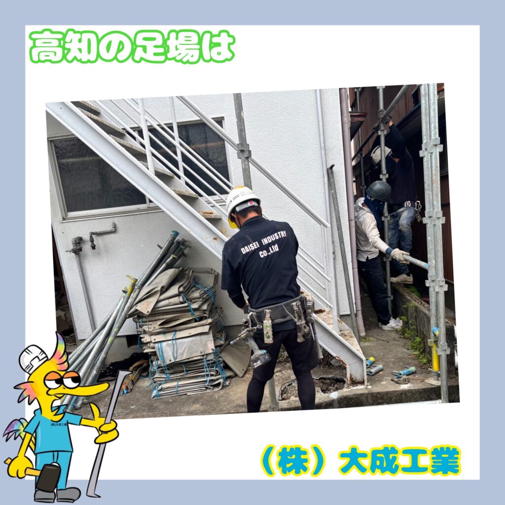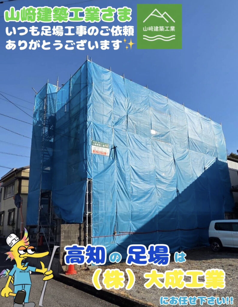 株式会社大成工業は、高知県内から四国内を中心に戸建て住宅、アパート、マンション、公共建築物等の足場工事業を行っております。