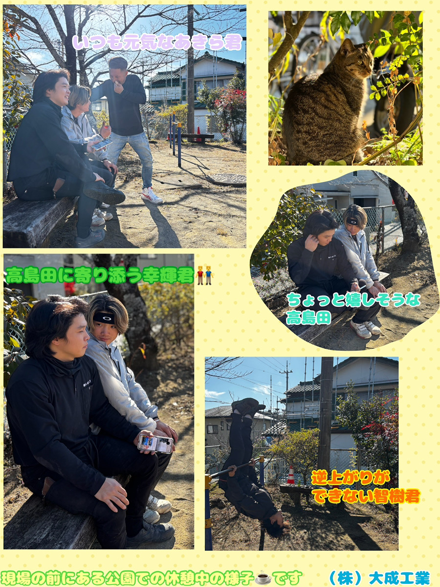 現場の目の前に公園があり、休憩時間にみんなと一緒に公園で団欒しました🛝