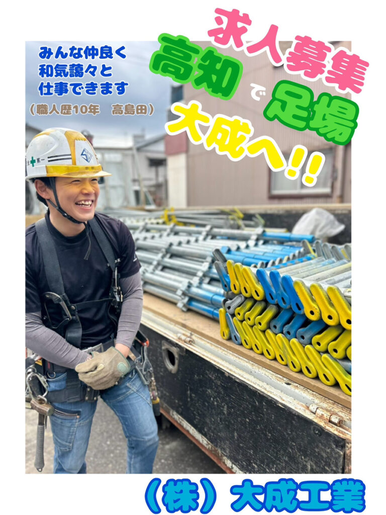 #株式会社大成工業 #高知市 #足場工事 #求人募集中 #お仕事依頼受付中 #足場工事