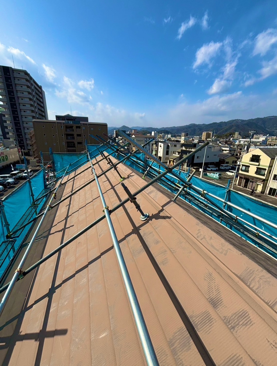 高知は一年を通して比較的暖かいため雪が降る日は毎年ほとんどないのですが、珍しく雪が降った影響で今日は屋根の上の足場を撤去する際の転倒や事故のリスクが懸念され、急遽段取りを変更し午後以降に足場撤去に回るなどの対応をしました📝無事事故なく1日を終えることができ一安心でした🫶